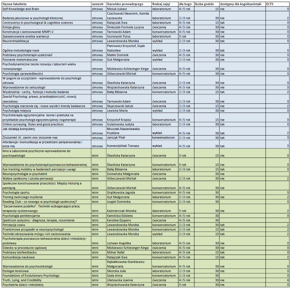 Uwaga! Na cześć kursów np. kognitywistyczne - zapisy są prowadzone w innym trybie niż na kursy oferowane przez pracowników Instytutu Psychologii UMK
